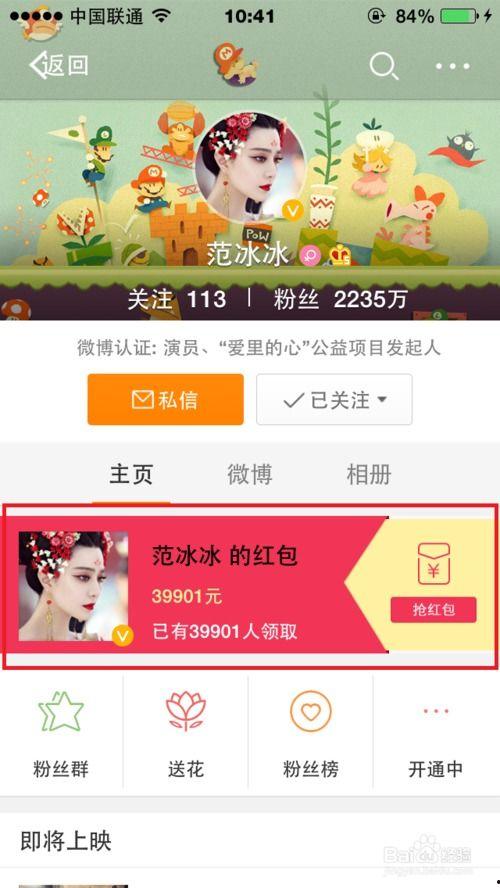哎呀,你有没有想过,在繁忙的日常生活中,突然收到一个明星的红包,那感觉是不是瞬间就变得不一样了呢?没错,就是那种让你心跳加速、嘴角上扬的感觉!今天,就让我来带你一探究竟,揭秘微博上如何抢明星红包的奥秘吧!